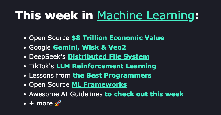 Open Source $8 Trillion Economic Value, Google Gemini, Wisk & Veo2, DeepSeek's Distributed File System, TikTok's LLM Reinforcement Learning, Lessons from the Best Programmers + more 🚀