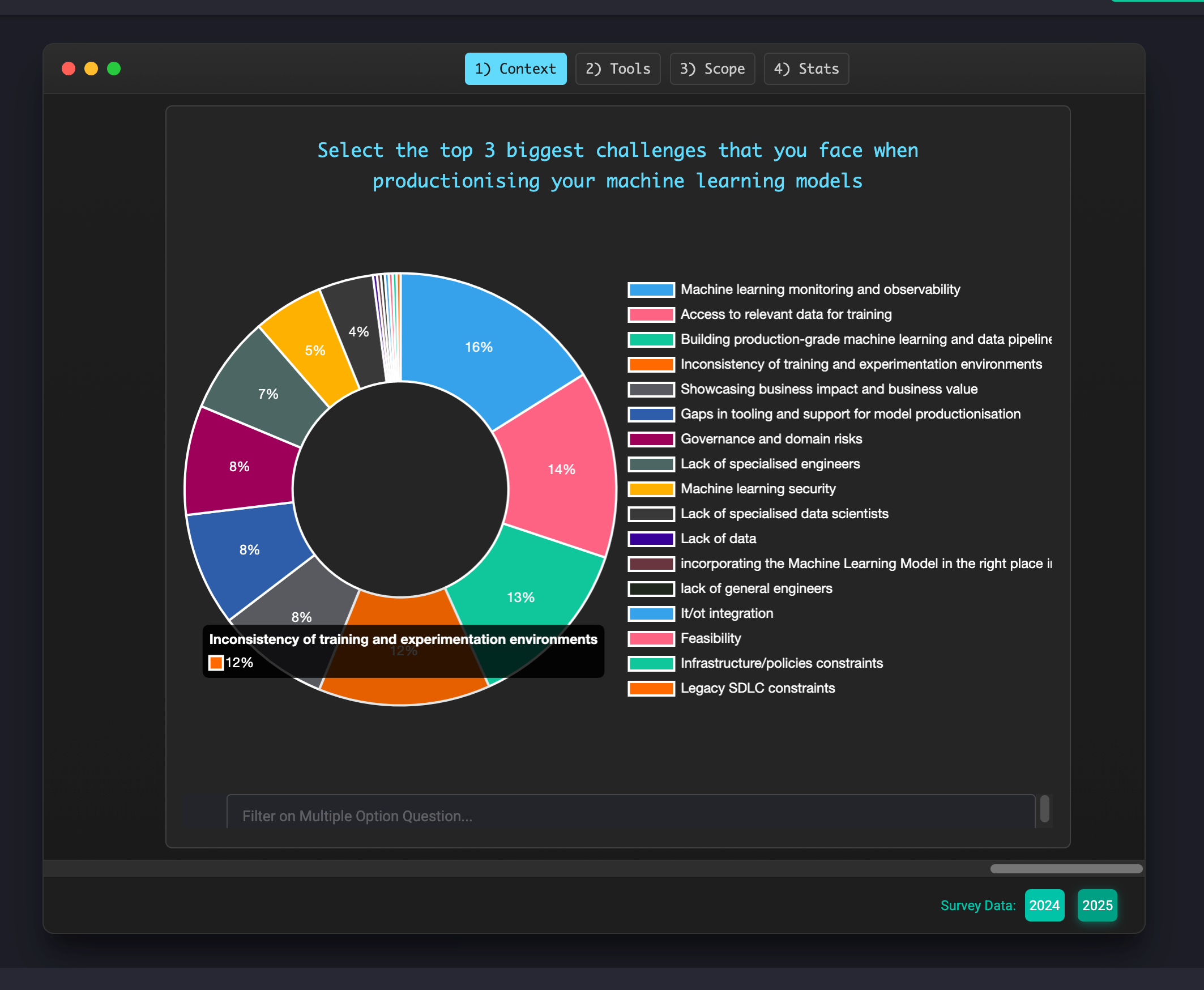 The results for the Survey on Production MLOps are out: ethical.institute/state-of-ml-2025 🚀🚀🚀 As part of the release we have updated the interface enabling real time toggling between 2024 and 2025 data, and have refreshed a cool new code-editor theme 😎 Check it out and share it around!!